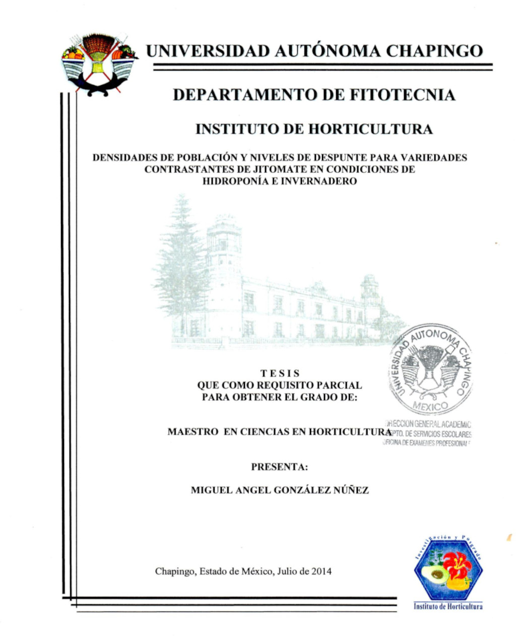 Tesis (Maestría en Ciencias en Horticultura)