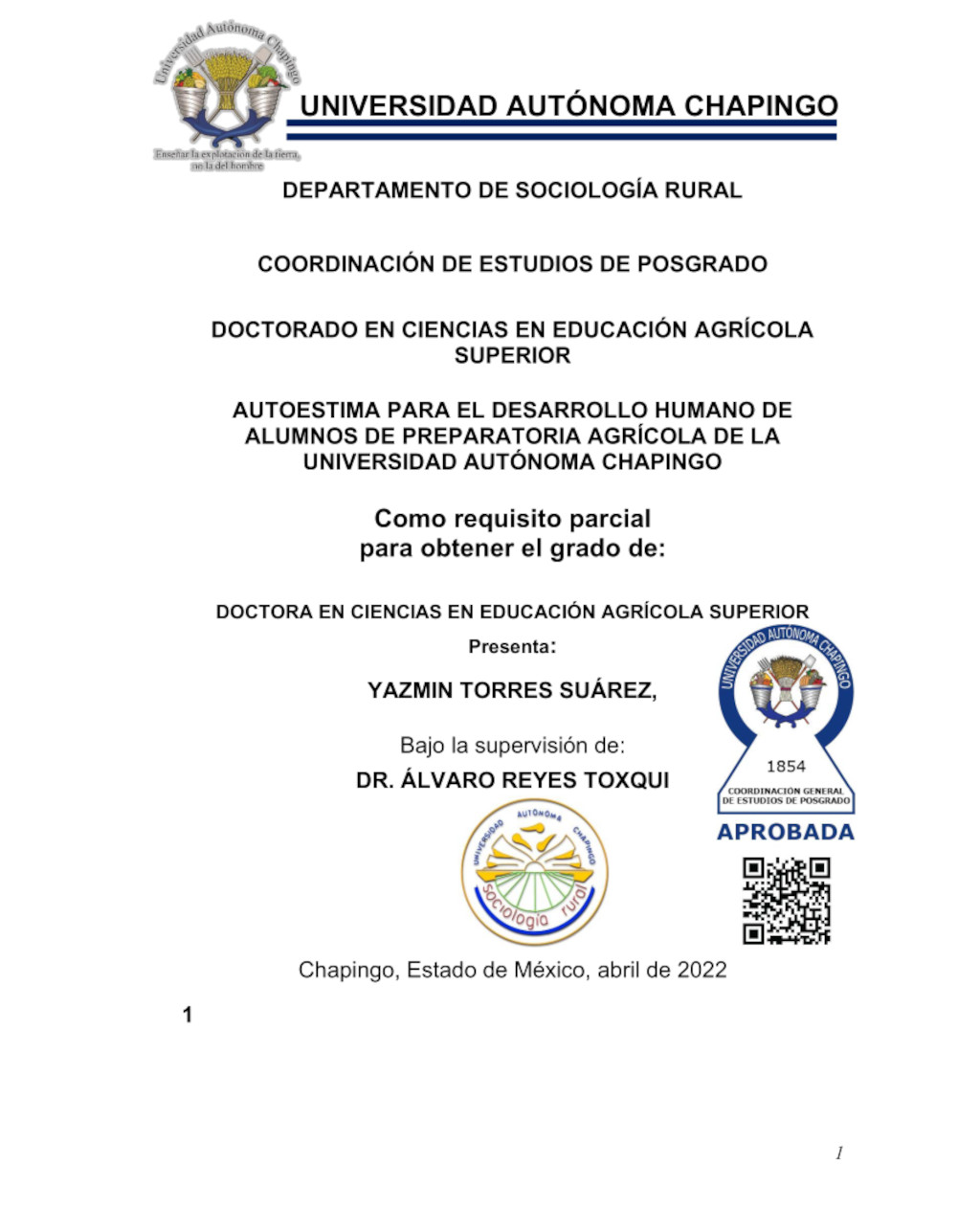 Autoestima para el desarrollo humano de alumnos de Preparatoria Agrícola de la Universidad Autónoma Chapingo
