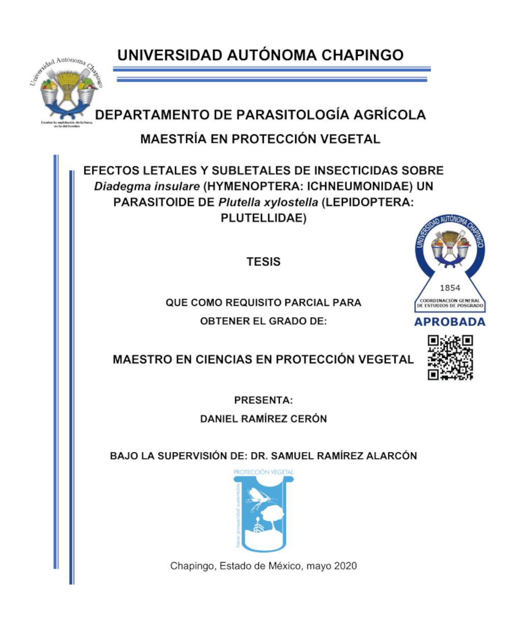 Tesis (Maestría en Ciencias en Protección Vegetal)
