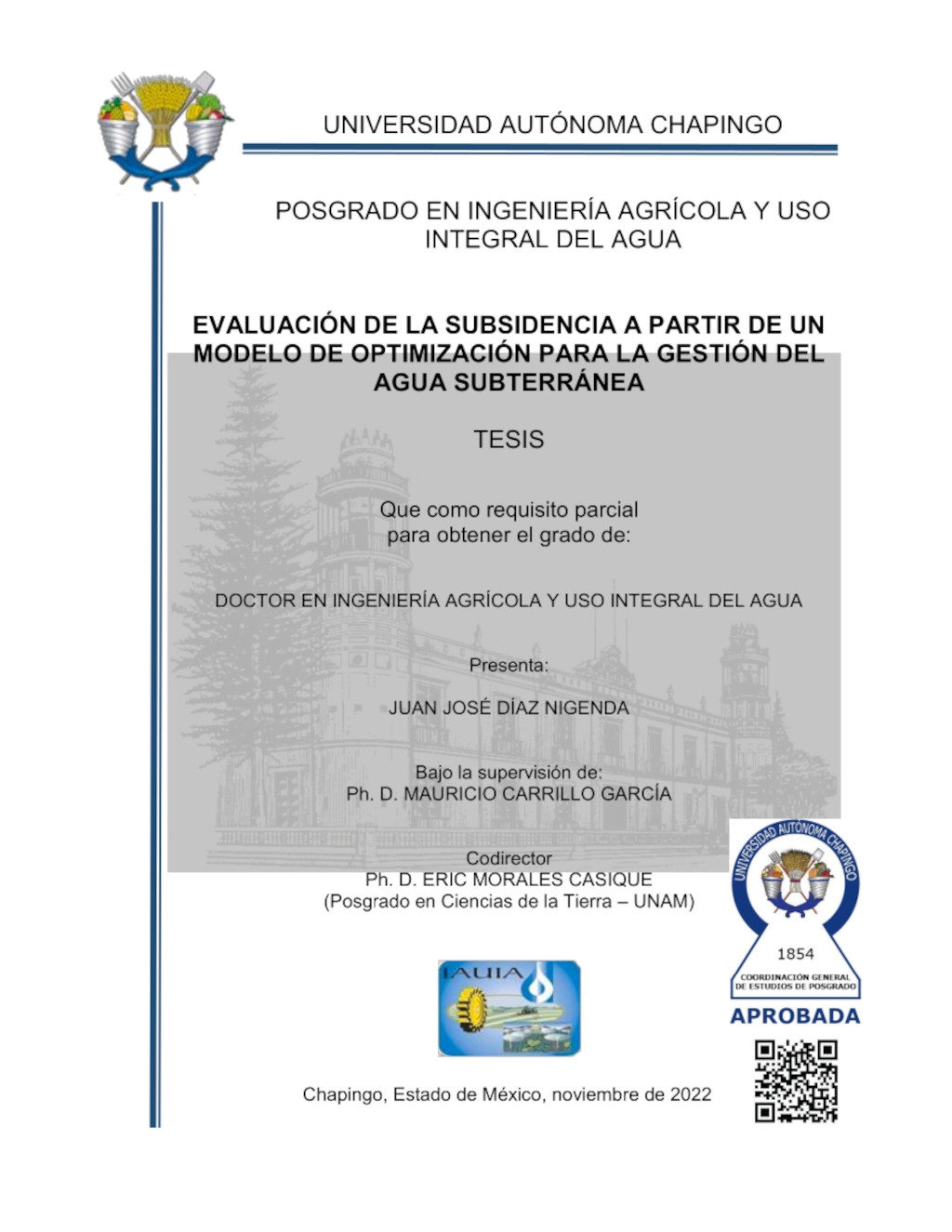 Tesis (Doctorado en Ingeniería Agrícola y Uso Integral del Agua)
