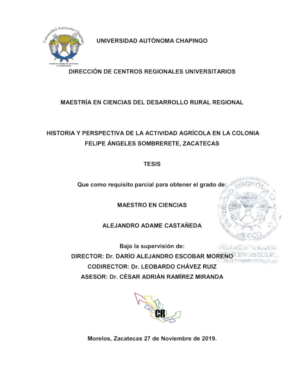 Historia y prospectiva de la actividad agrícola en la colonia Felipe Ángeles Sombrerete, Zacatecas
