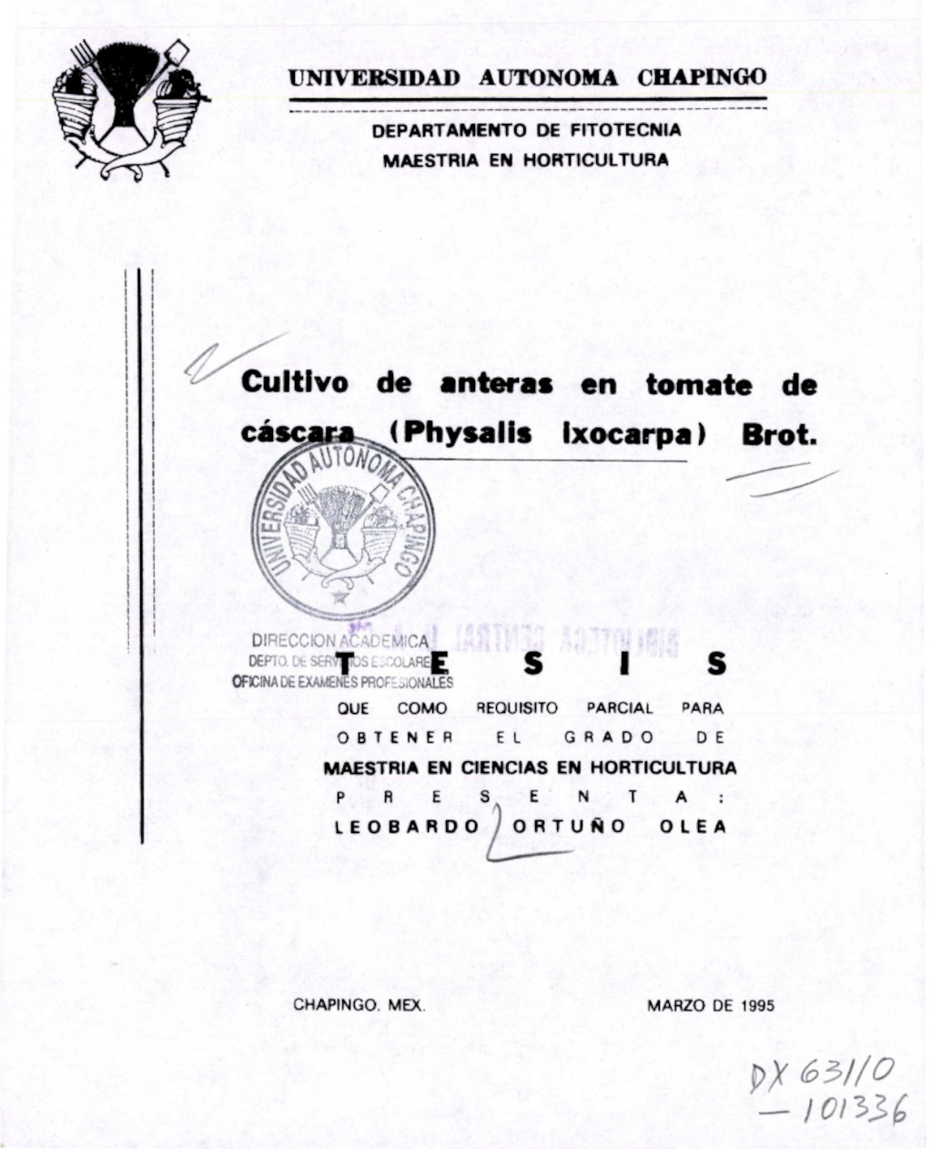 Tesis (Maestría en Ciencias en Horticultura)