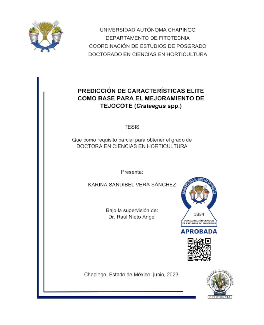 Predicción de características elite como base para el mejoramiento de tejocote (Crataegus spp.)