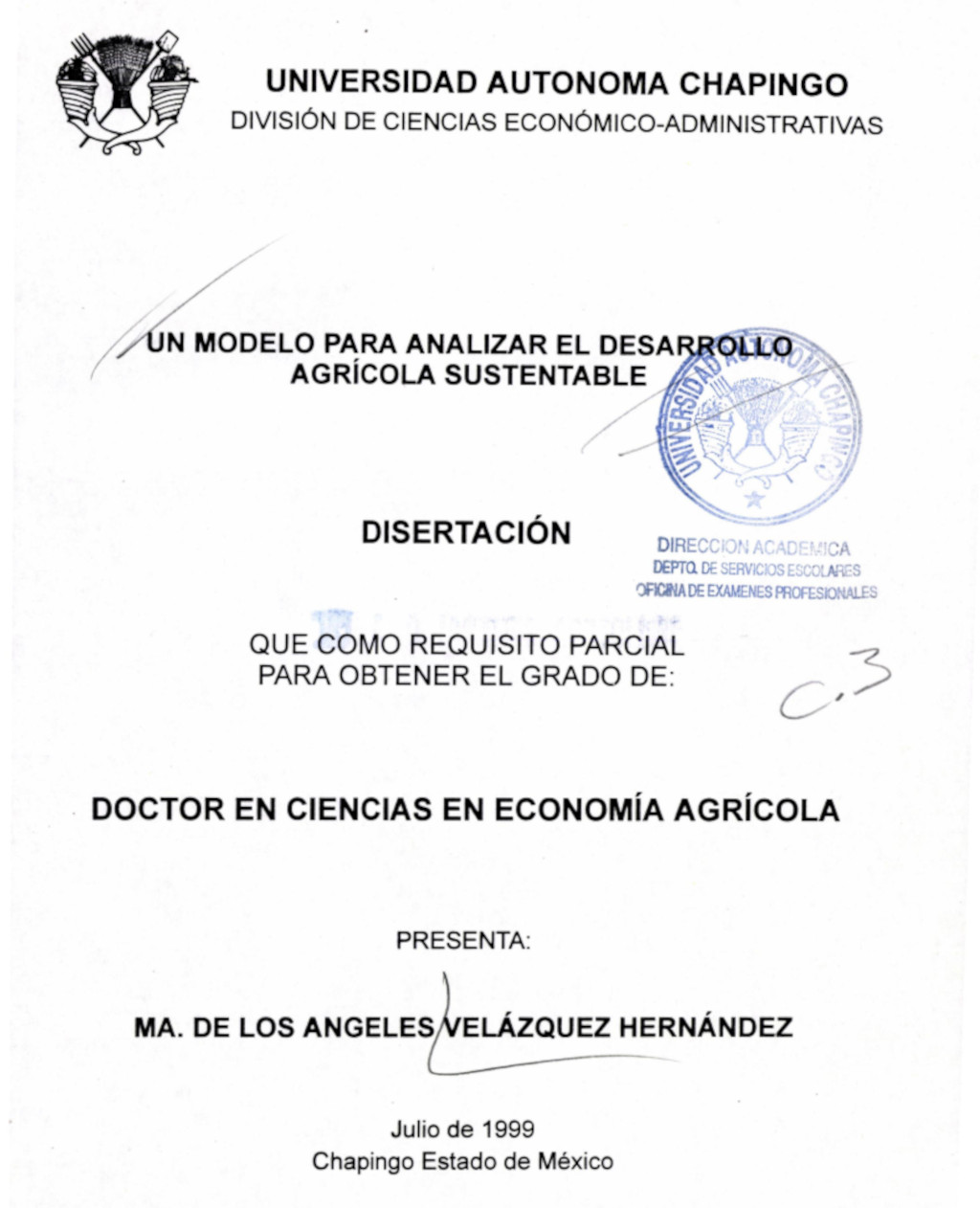 Tesis (Doctorado en Ciencias en Economía Agrícola)