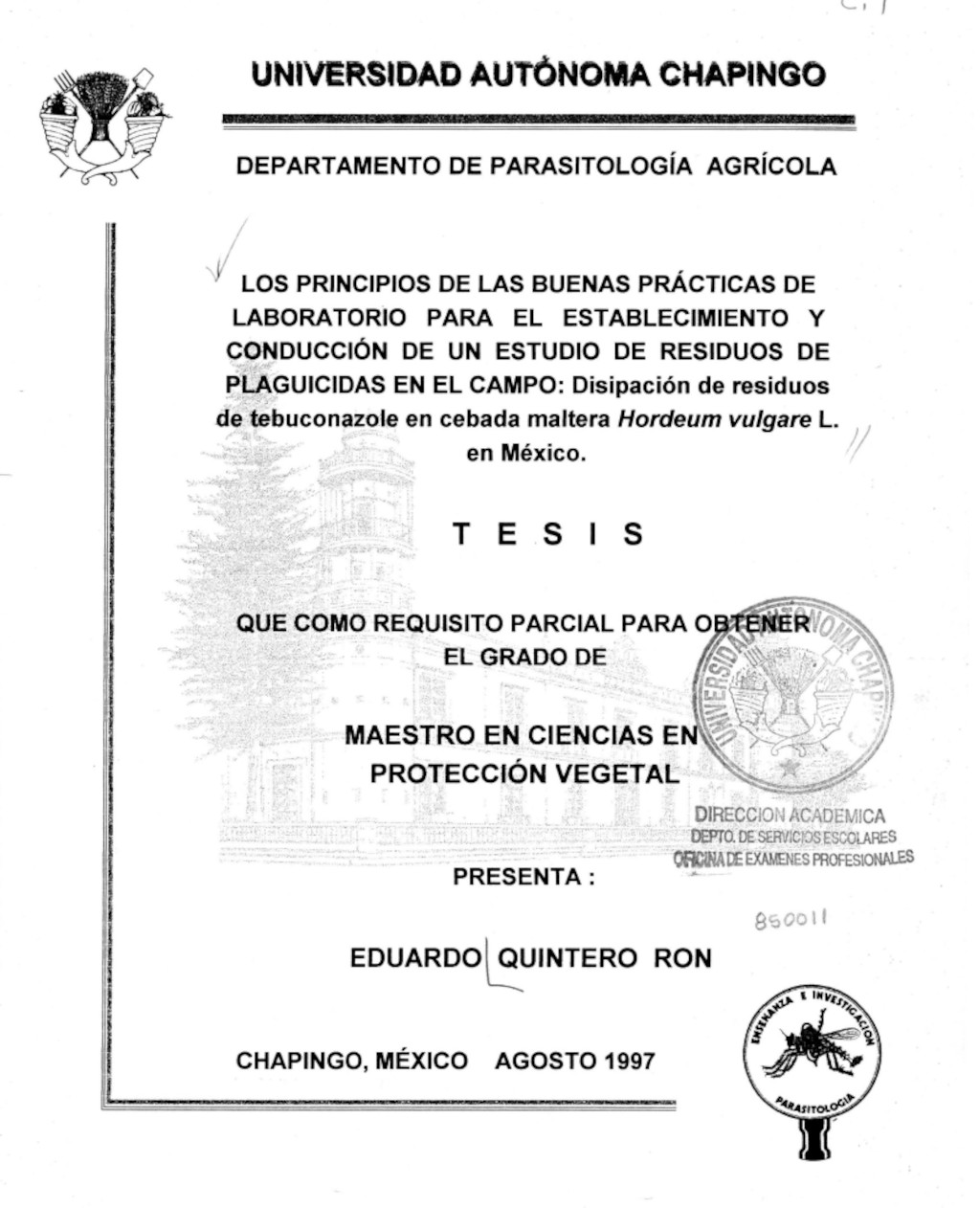 Los principios de las buenas prácticas de laboratorio para el establecimiento y conducción de un estudio de residuos de plaguicidas en el campo: Disipación de residuos de tebuconazole en el cultivo de cebada maltera Hordeum vulgare L. en México