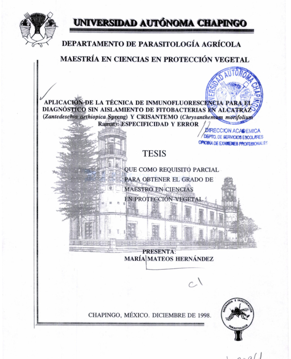 Tesis (Maestría en Ciencias en Protección Vegetal)