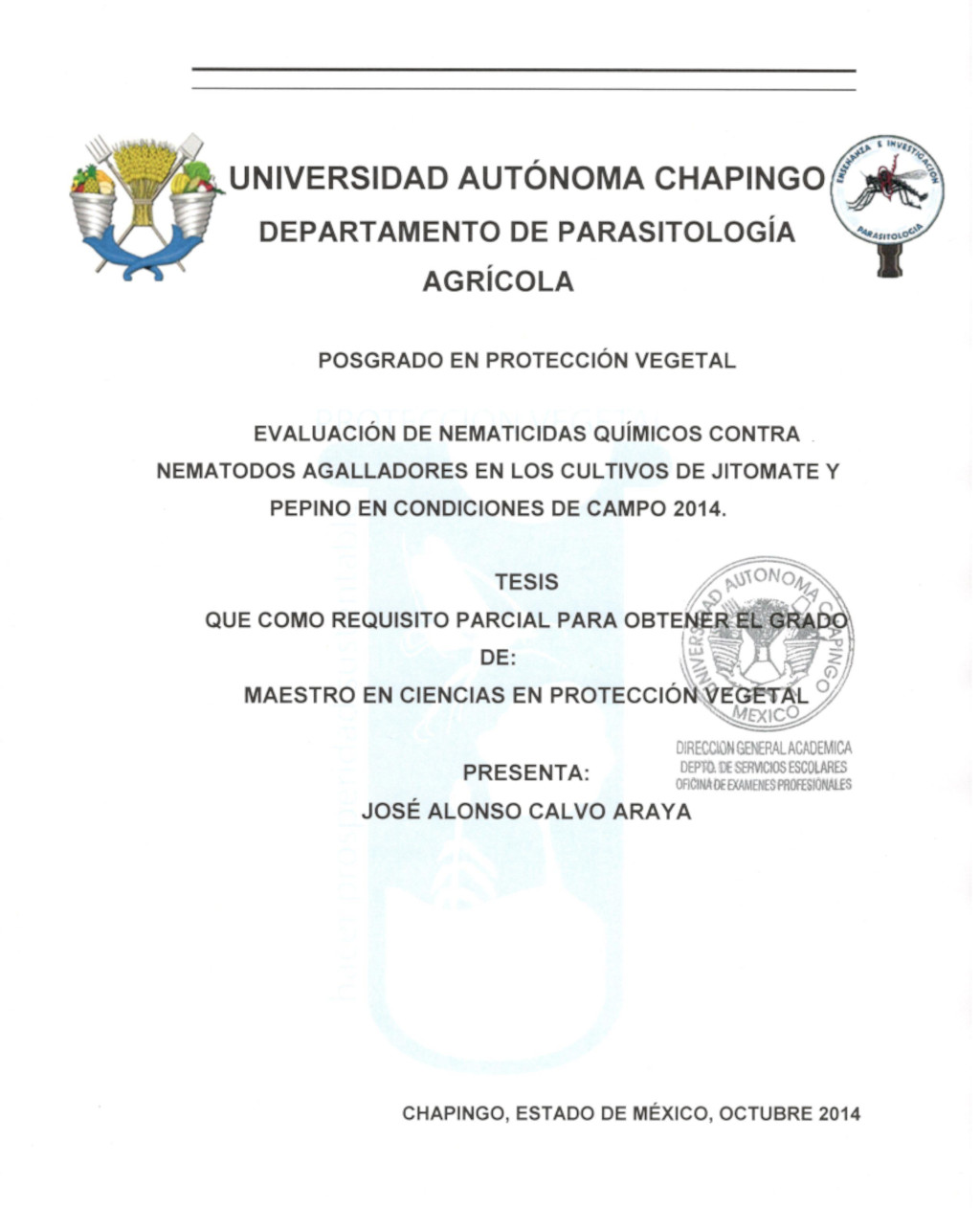 Tesis (Maestría en Ciencias en Protección Vegetal)