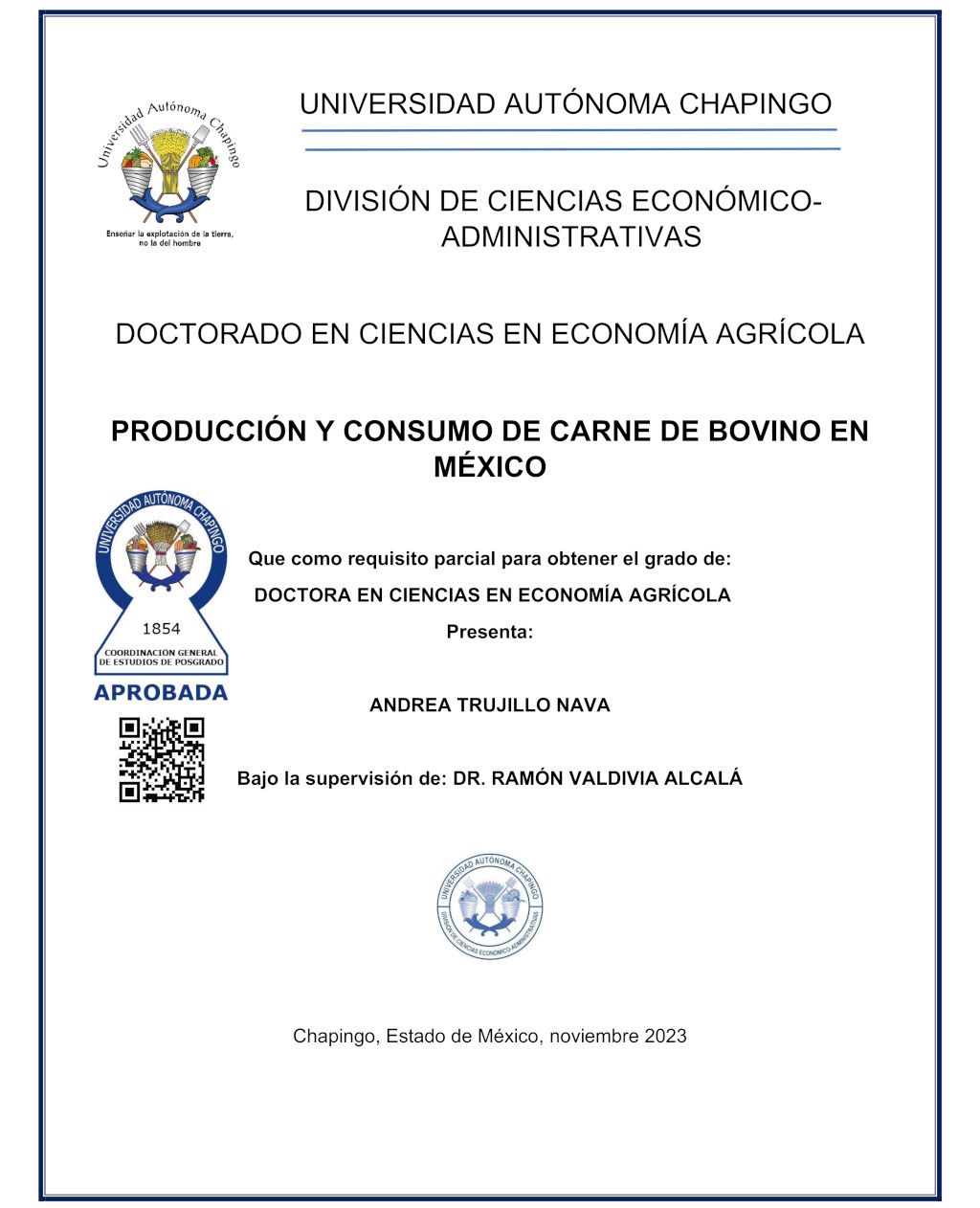 Tesis (Doctorado en Ciencias en Economía Agrícola)