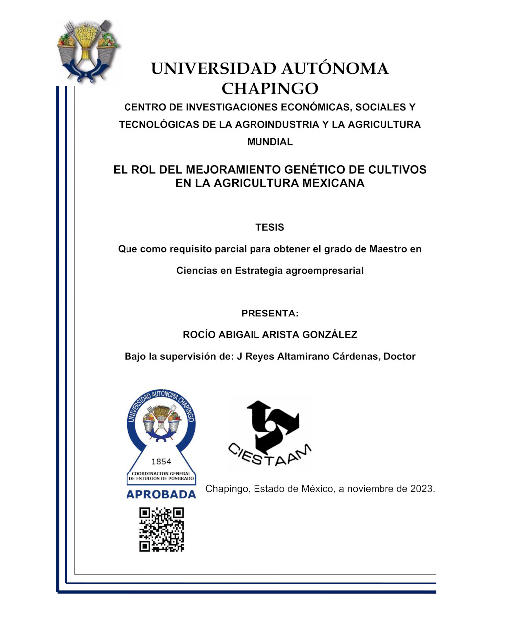 Tesis (Maestría en Ciencias en Estrategia Agroempresarial)