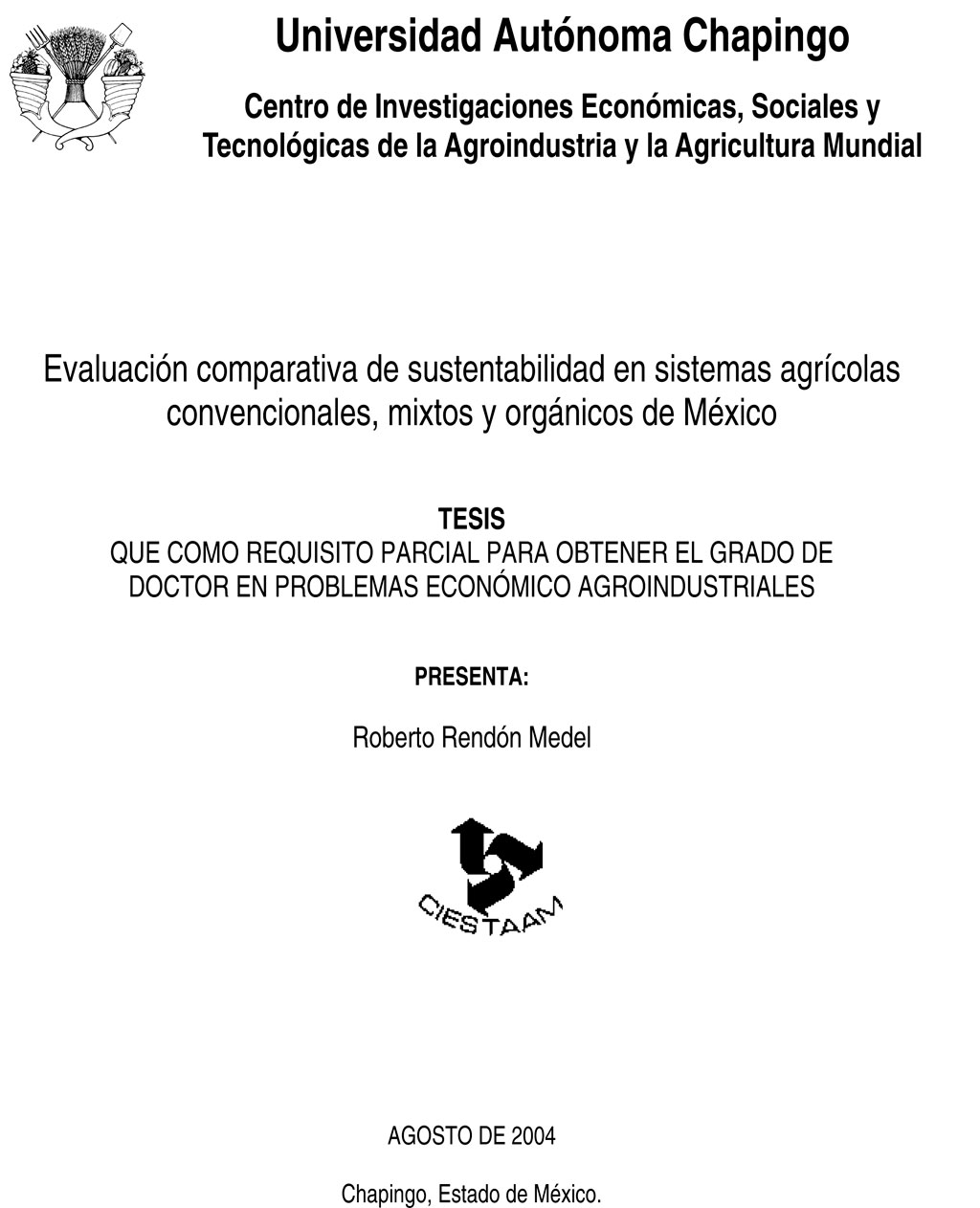 Evaluación comparativa de sustentabilidad en sistemas agrícolas convencionales,mixtos y orgánicos de México