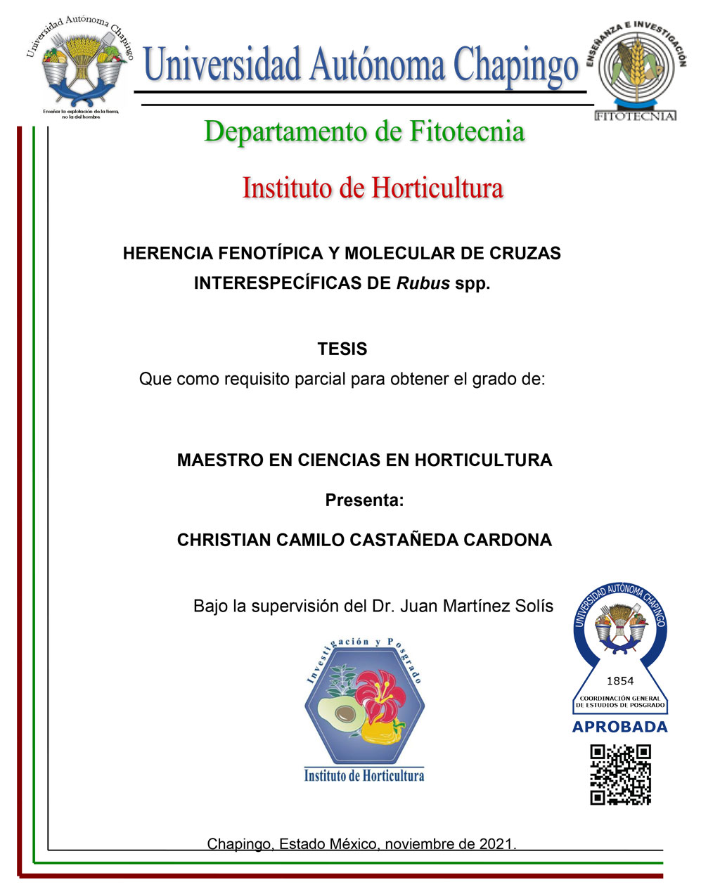 Tesis (Maestría en Ciencias en Horticultura)