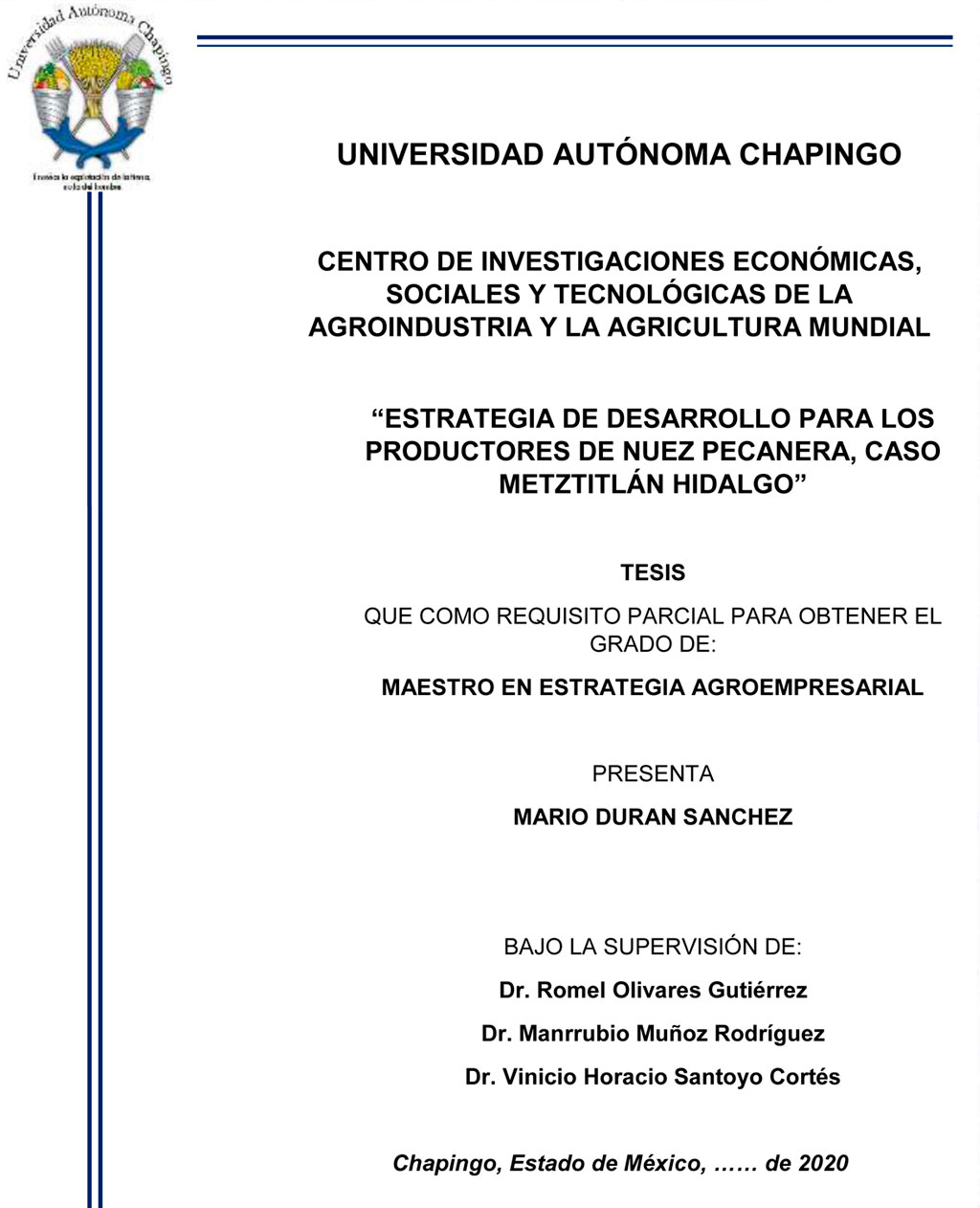 Estrategia de desarrollo para los productores de nuez pecanera, caso Metztitlán Hidalgo