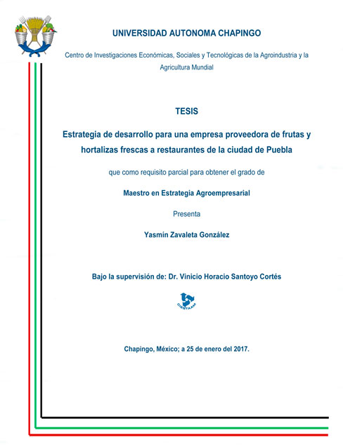 Estrategia de desarrollo para una empresa proveedora de frutas y hortalizas frescas a restaurantes de la ciudad de Puebla