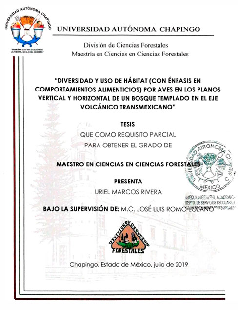 Diversidad y uso de hábitat (con énfasis en comportamientos alimenticios) por aves en los planos vertical y horizontal de un bosque templado en el eje volcánico transmexicano