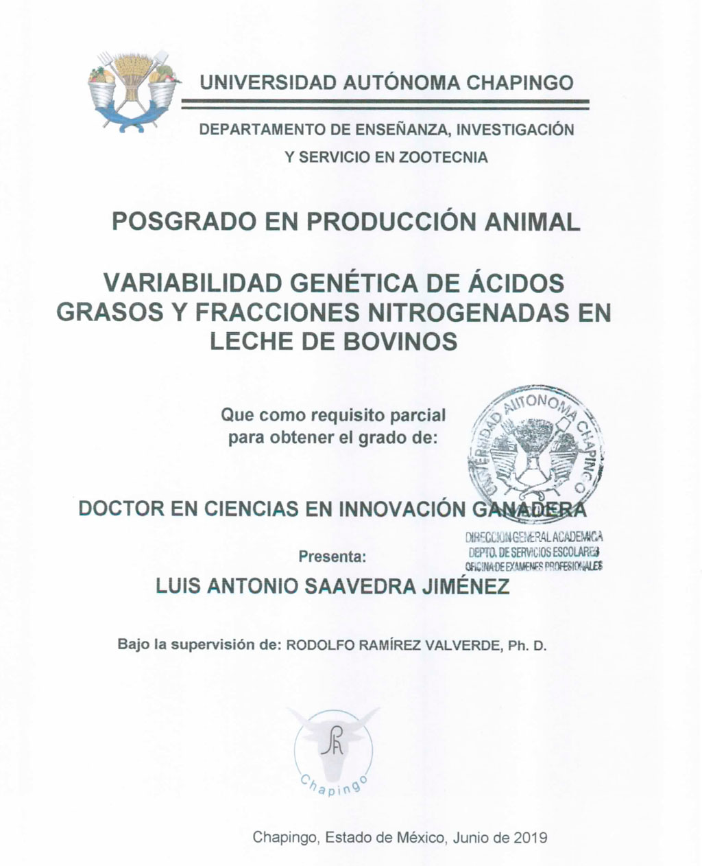 Tesis (Doctorado en Ciencias en Innovación Ganadera)