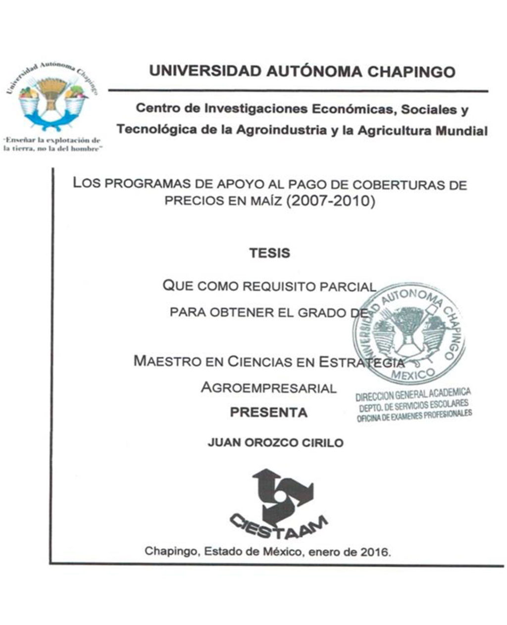 Tesis (Maestría en Ciencias en Estrategia Agroempresarial)