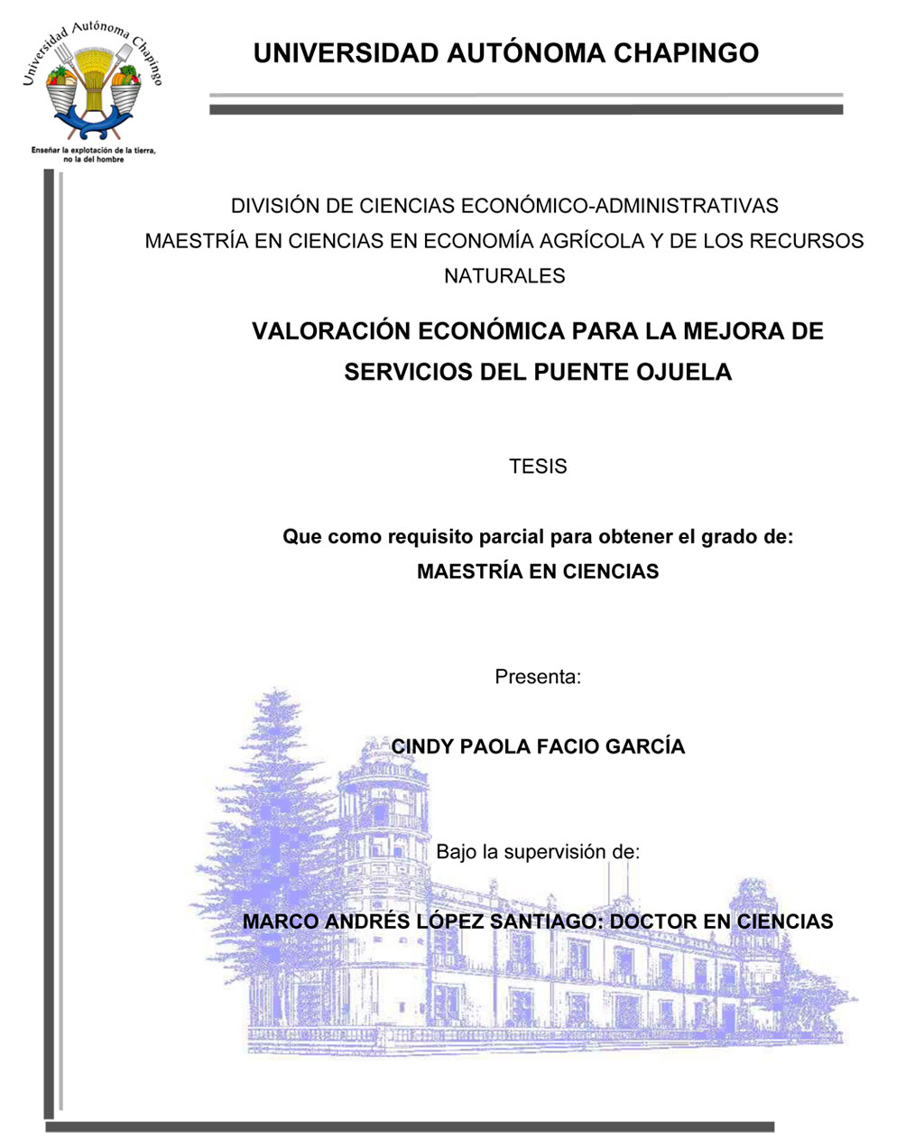 "El presente estudio se realizó un análisis de la valoración económica utilizando el método de valoración contingente. El caso de estudio fue a los visitantes que llegan al Puente Ojuela en Mapimí, Durango, para medir la DAP por parte de sus turistas a cambio de la mejora de servicios con los que cuenta actualmente. Se aplicó la fórmula de cálculo de muestra para poblaciones infinitas, por lo que se determinó el tamaño de muestra de 239 observaciones. El software que se utilizó para el análisis de los datos recopilados fue el programa NLOGIT 4.01.