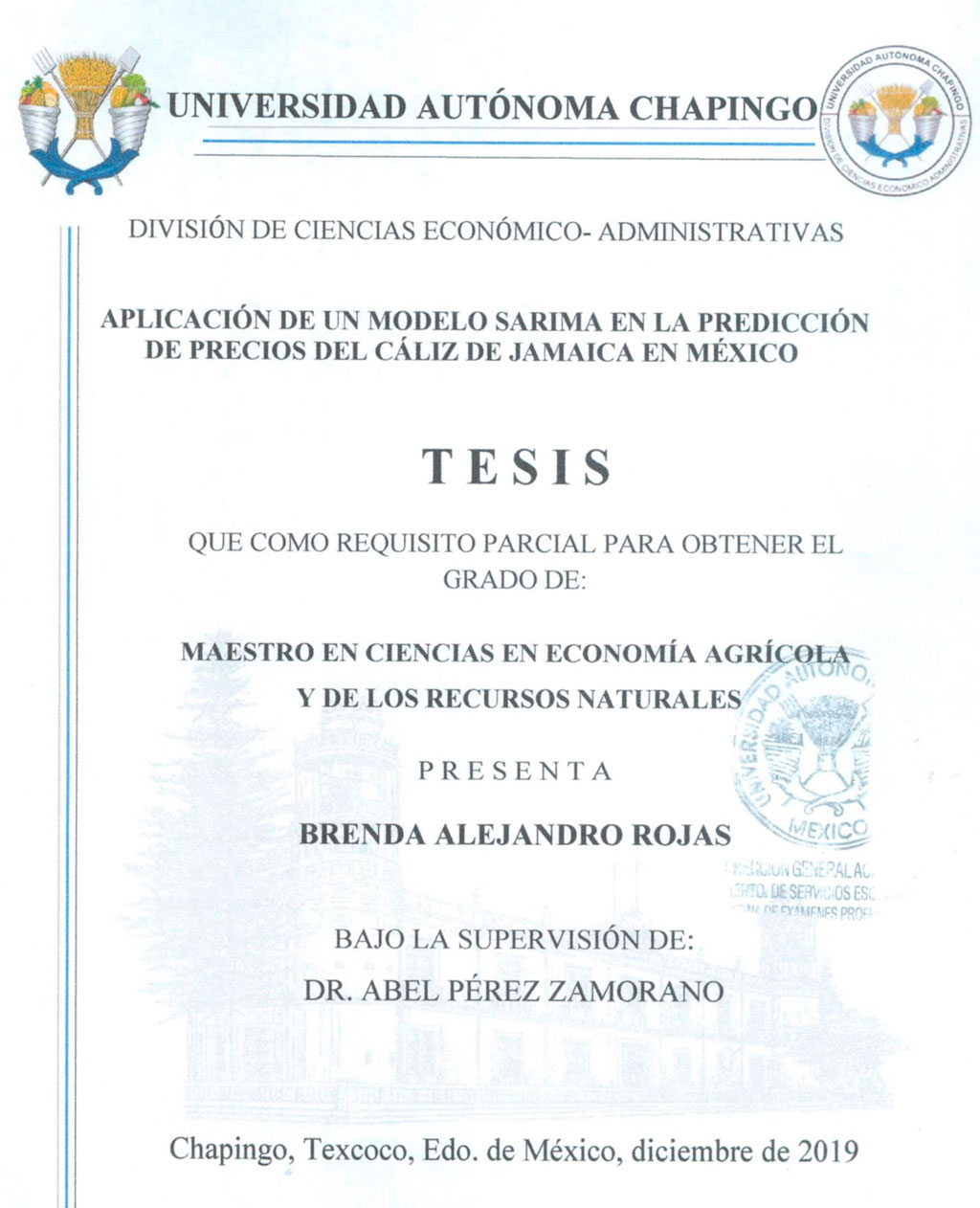 Tesis (Maestría de Ciencias en Economía Agrícola y de los Recursos Naturales)