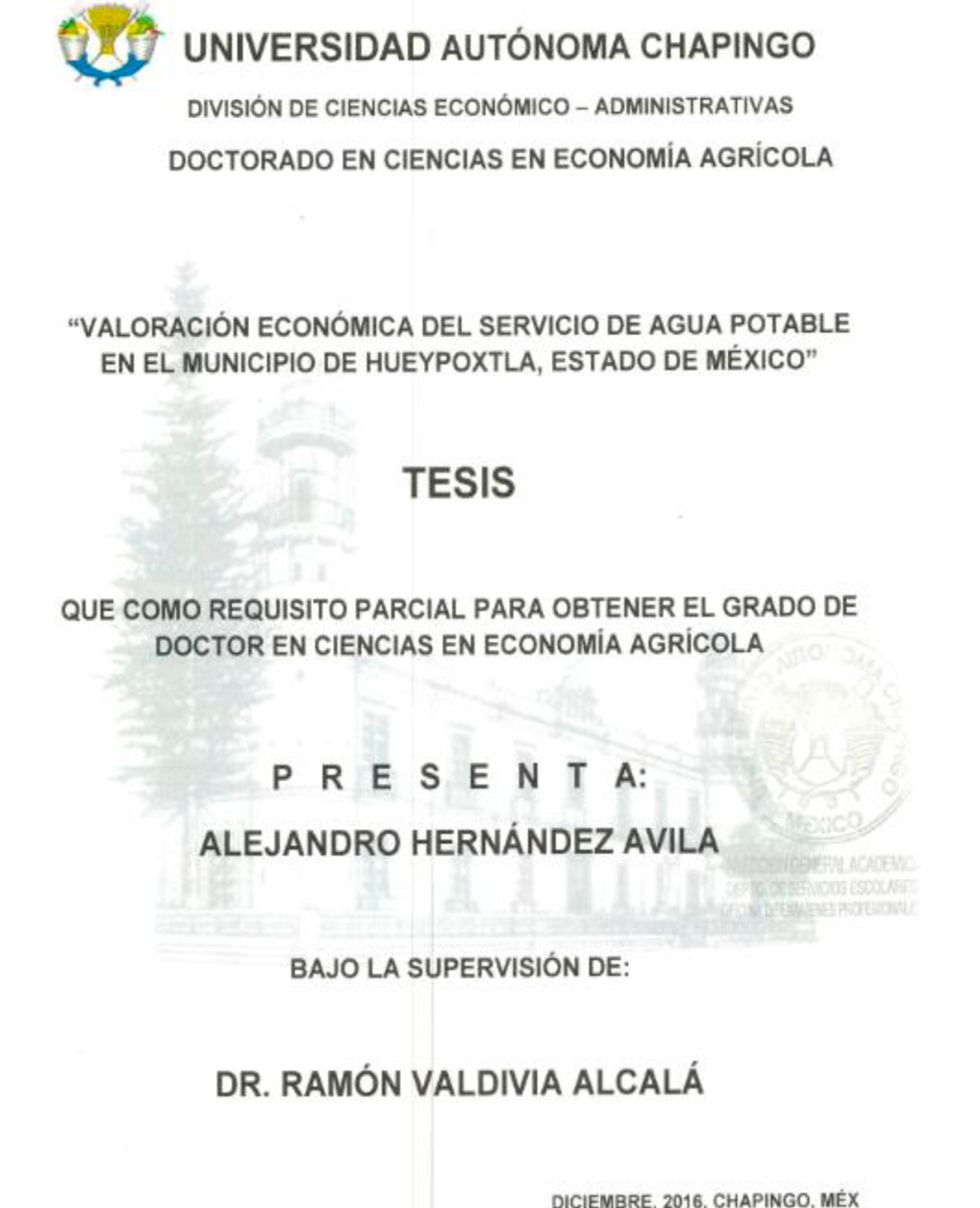 Valoración económica del servicio de agua potable del municipio de Hueypoxtla, Estado de México