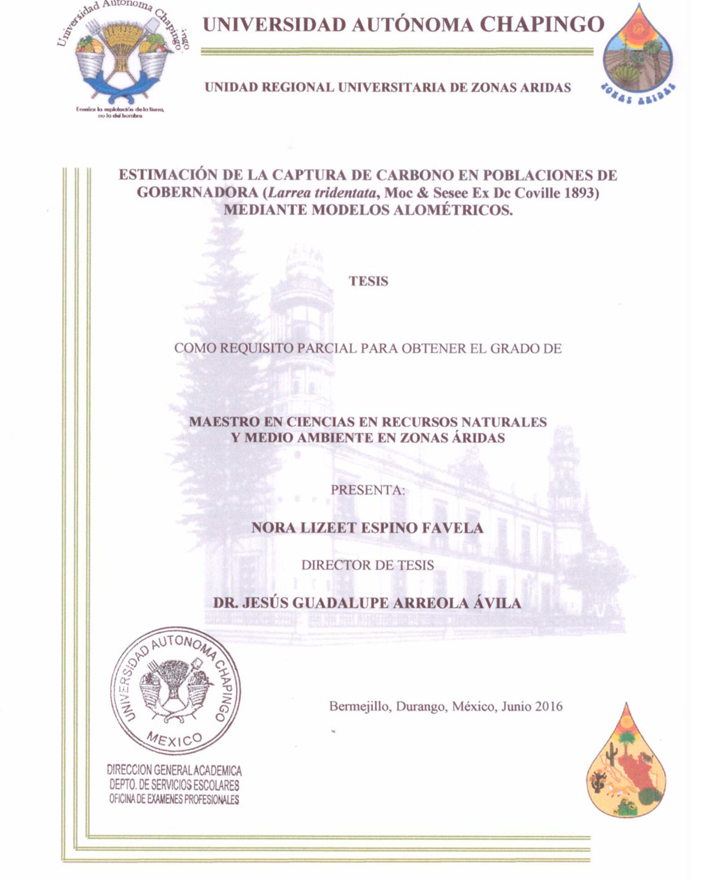 Tesis (Maestría en Ciencias en Recursos Naturales y Medio Ambiente en Zonas Áridas)