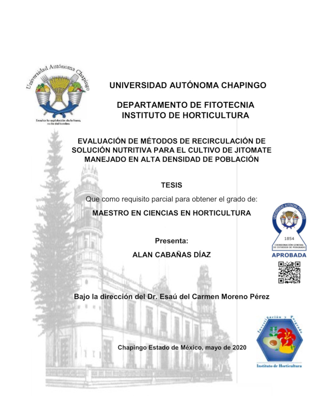 Tesis (Maestría en Ciencias en Horticultura)