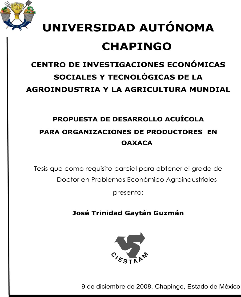 Tesis (Doctorado en Problemas Económico Agroindustriales)