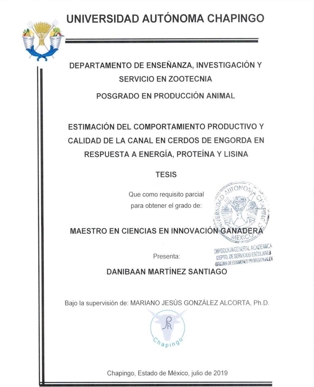 Estimación del comportamiento productivo y calidad de la canal en cerdos de engorda en respuesta a energía, proteina y lisina