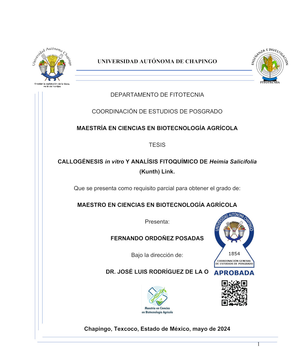 Callogénesis in vitro y analísis fitoquímico de Heimia Salicifolia (Kunth) link