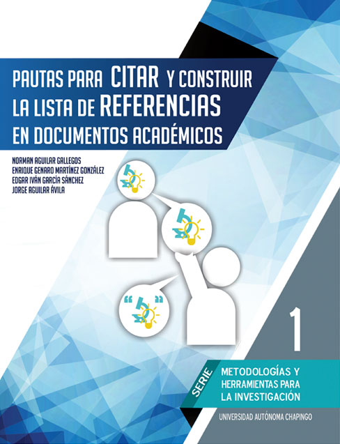En la investigación científica, y en el proceso de generar conocimiento en general, es indispensable sustentar ideas y contrastar hallazgos o resultados de la investigación con conocimiento generado previamente por otros autores. El citar otras fuentes es necesario ya sea para definir un marco conceptual, teórico o de referencia, explicar materiales y métodos usados, fortalecer un punto de vista propio, comparar resultados, discutir a profundidad los hallazgos, etc., por lo que se podría decir que no sólo es importante la citación, sino que es necesaria. Es por ello que el propósito de este documento es proveer al lector de los elementos básicos sobre la citación dentro del texto y la construcción de referencias, a través de casos específicos que expliquen los elementos a considerar al momento de su uso, haciendo énfasis en las diferencias entre los estilos de citación comúnmente utilizados.