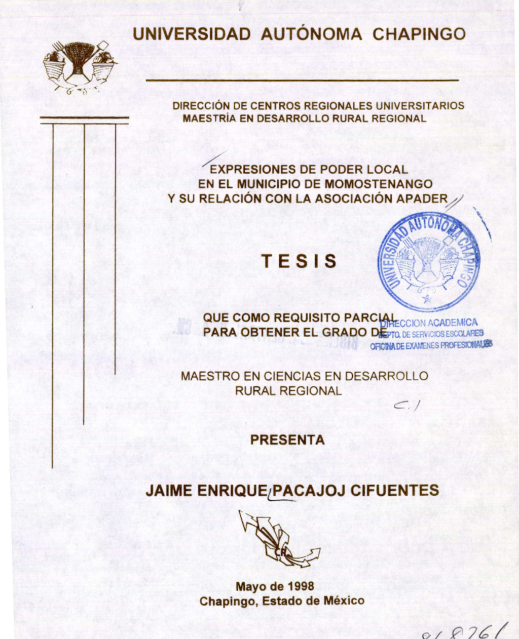 Expresiones de poder local en el municipio de Momostenango y su relación con la asociación APADER