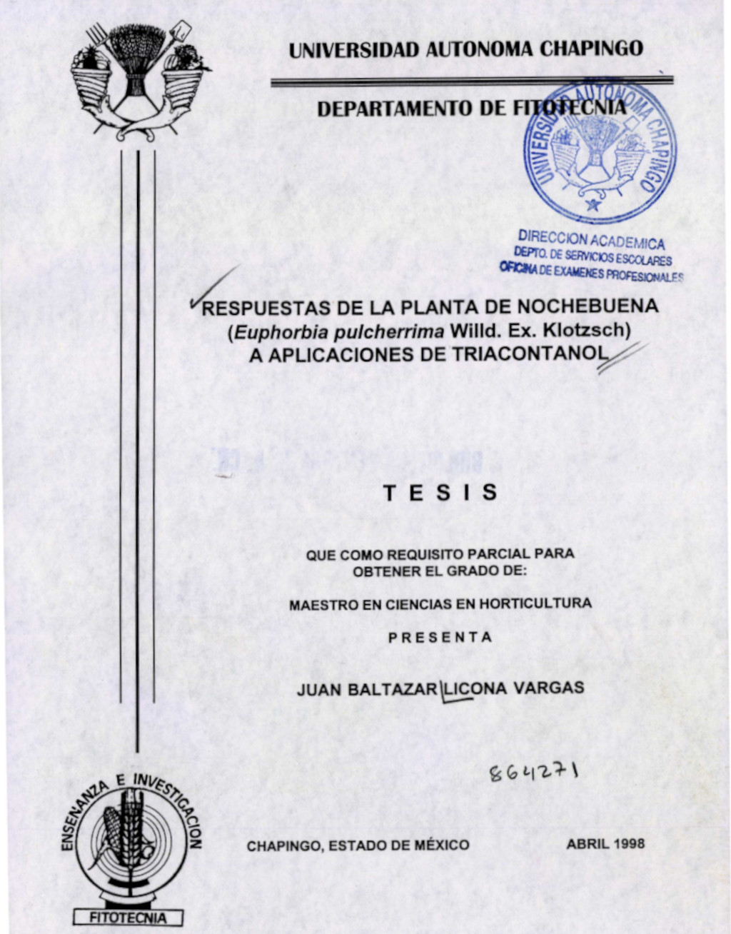 Respuestas de la planta de nochebuena (Euphorbia pulcherrima Willd. Ex. Klotzsch) a aplicaciones de triacontanol