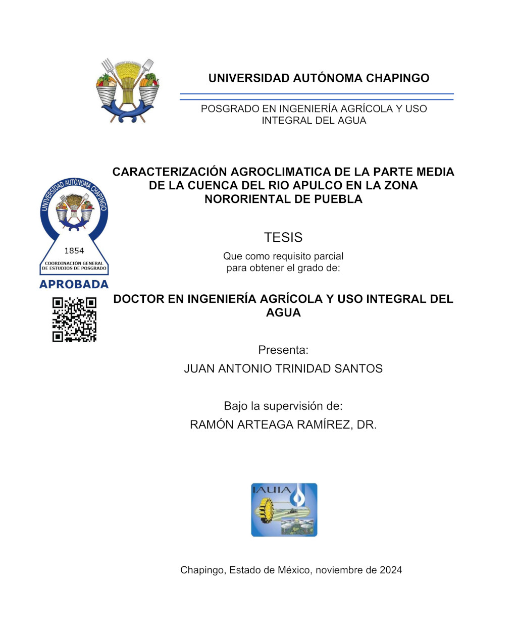 Tesis (Doctorado en Ingeniería Agrícola y Uso Integral del Agua)