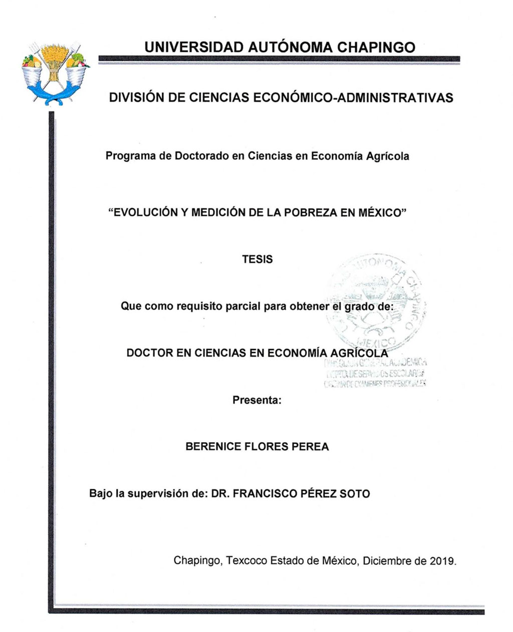 Tesis (Doctorado en Ciencias en Economía Agrícola)