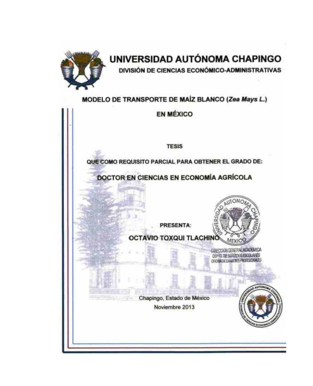 Modelo de transporte de maíz blanco (Zea mays L.) en México