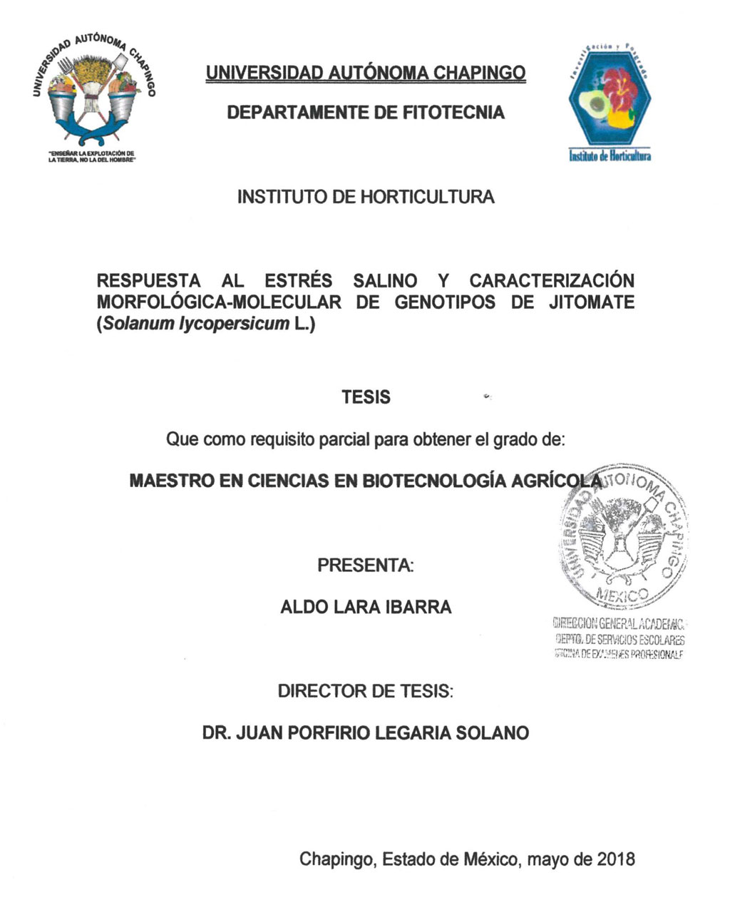 | dc.title | Respuesta al estrés salino y caracterización morfológica-molecular de genotipos de jitomate (Solanum lycopersicum L.) | |