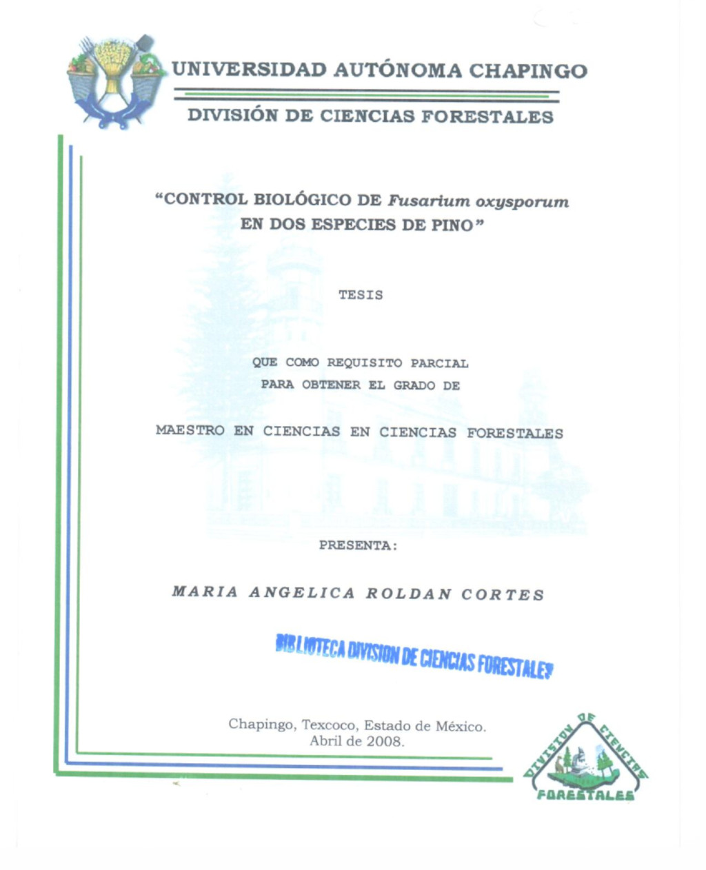 | dc.title | Control biológico de Fusarium oxysporum en dos especies de pino | |