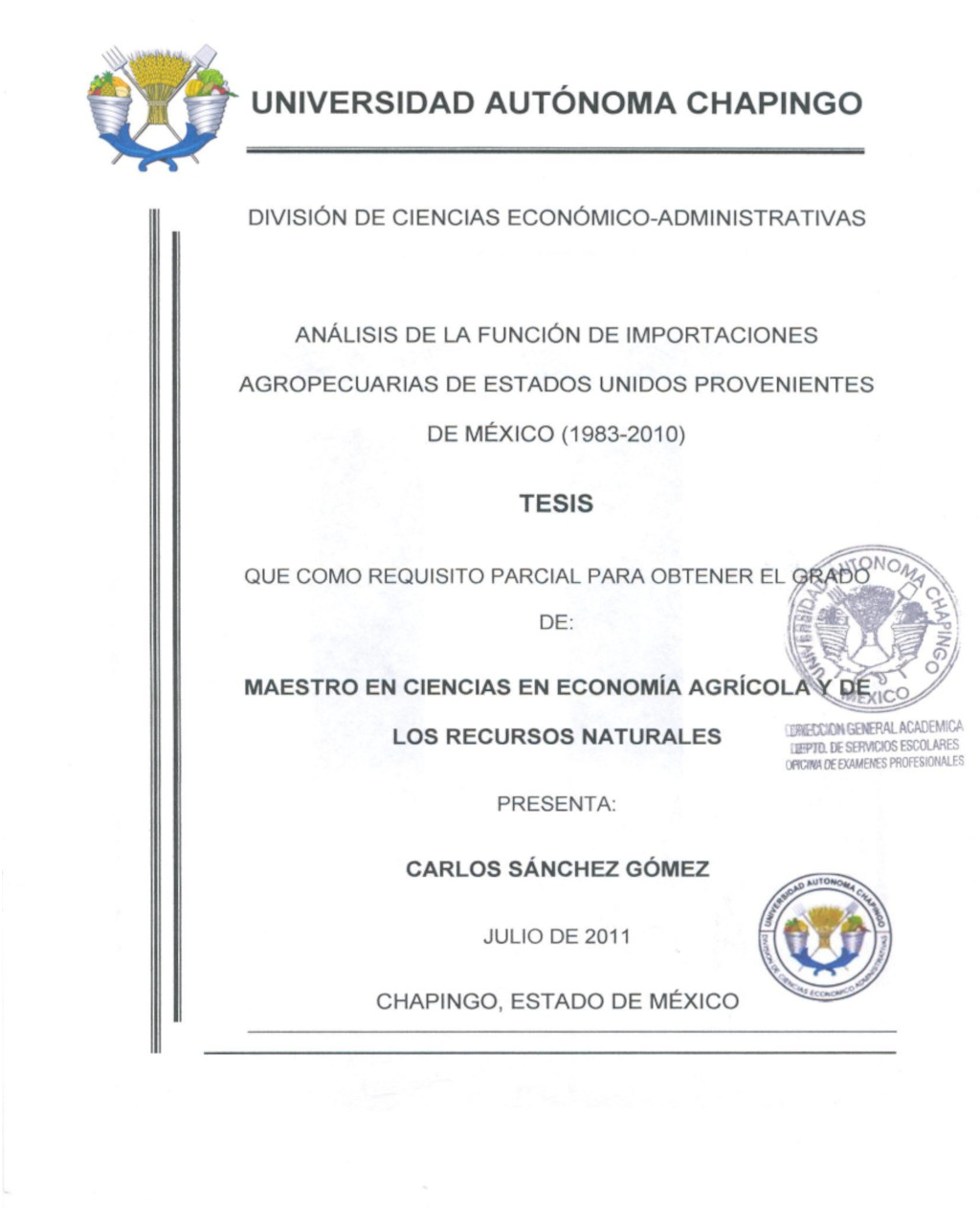 Análisis de la función de importaciones agropecuarias de los Estados Unidos provenientes de México (1983-2010)
