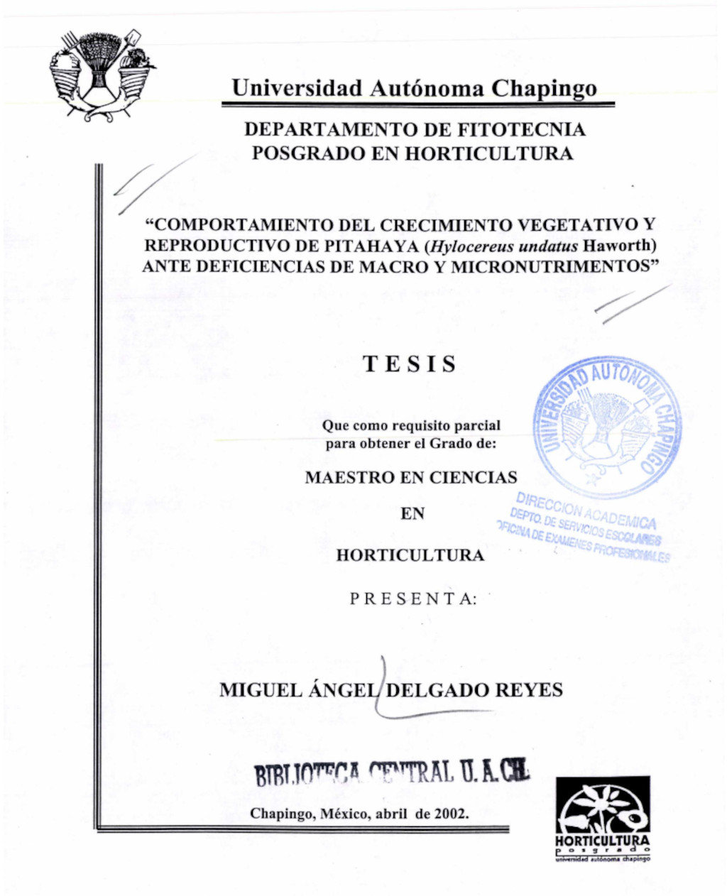 Comportamiento del crecimiento vegetativo y reproductivo de pitahaya (Hylocereus undatus Haworth) ante deficiencias de macro y micronutrimentos