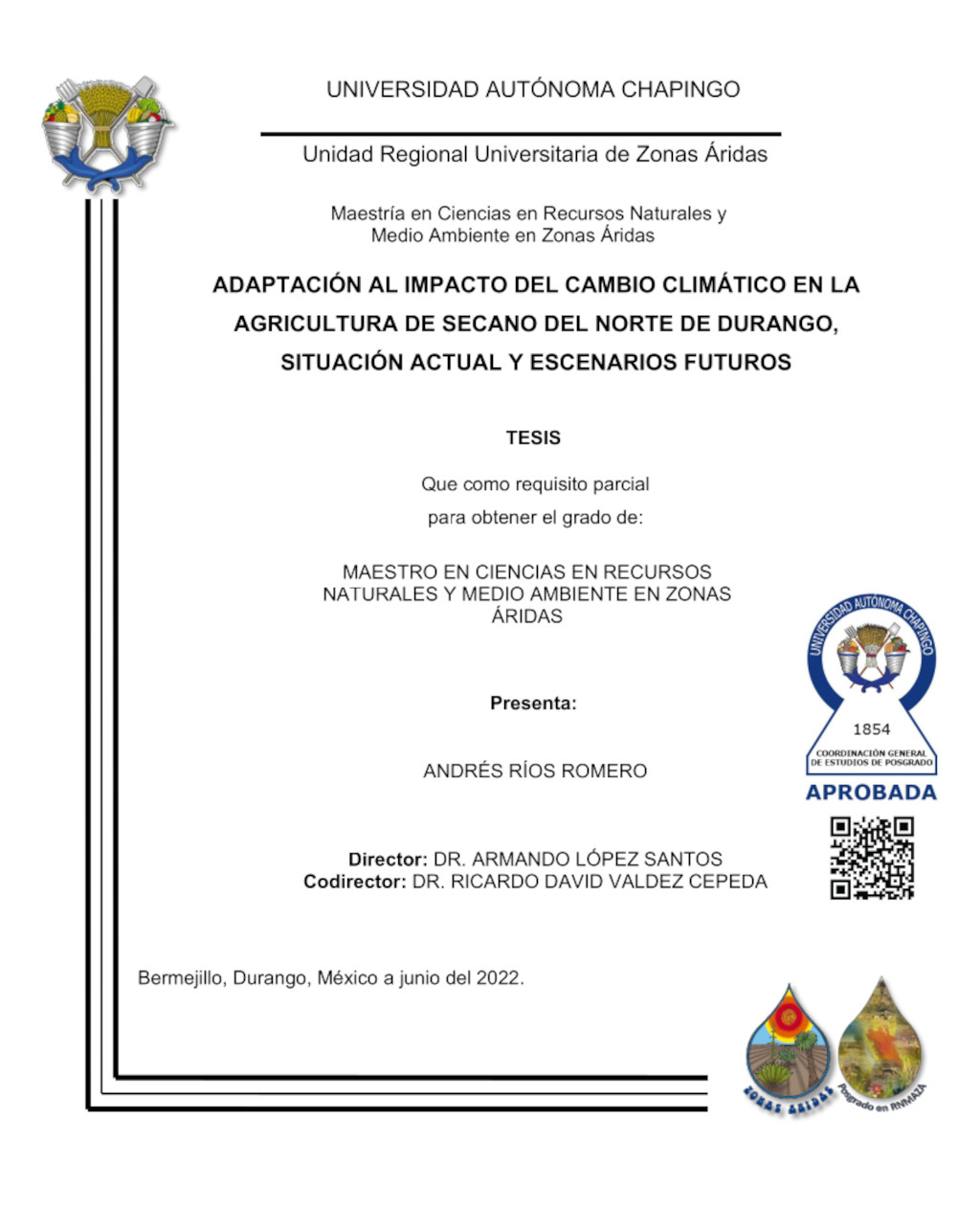 Adaptación al impacto del cambio climático en la agricultura de secano del norte de Durango, situación actual y escenarios futuros