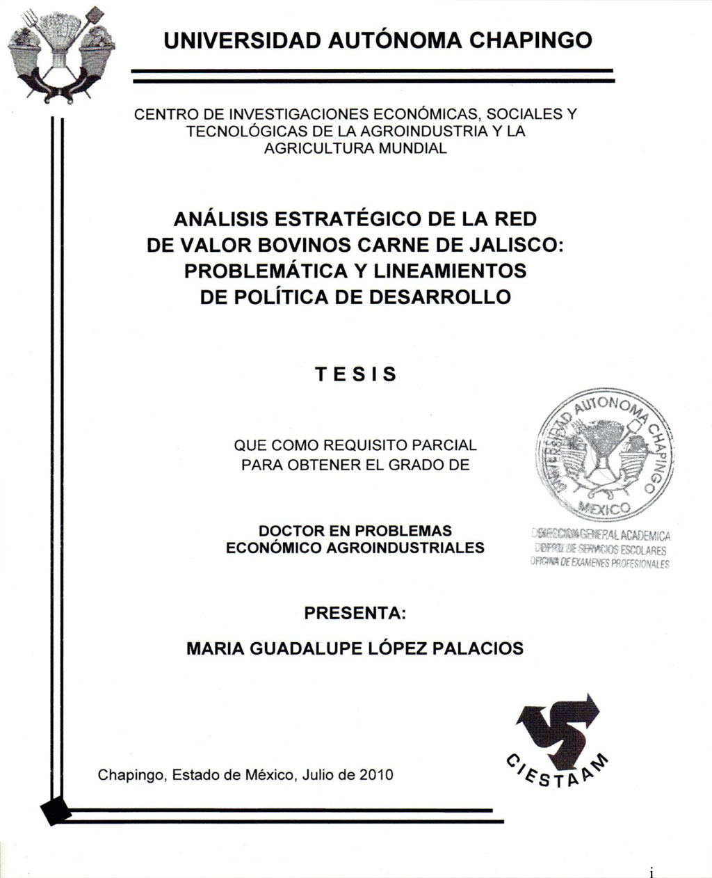 Tesis (Doctorado en Problemas Económico Agroindustriales)
