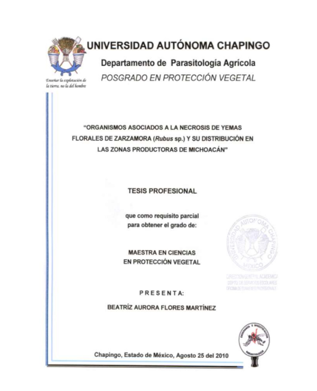 Tesis (Maestría en Ciencias en Protección Vegetal)
