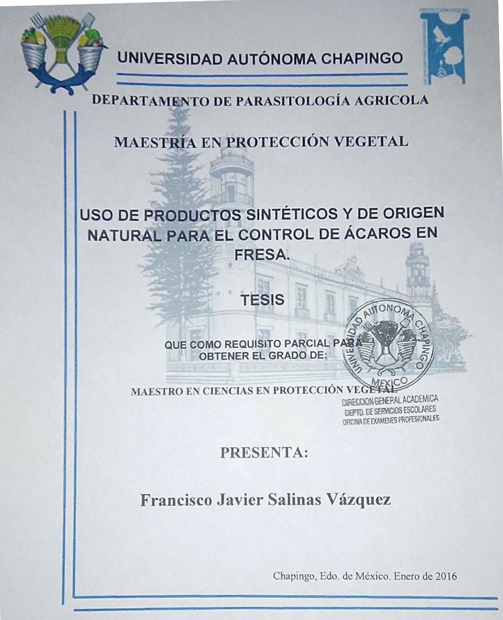 Tesis (Maestría en Ciencias en Protección Vegetal)