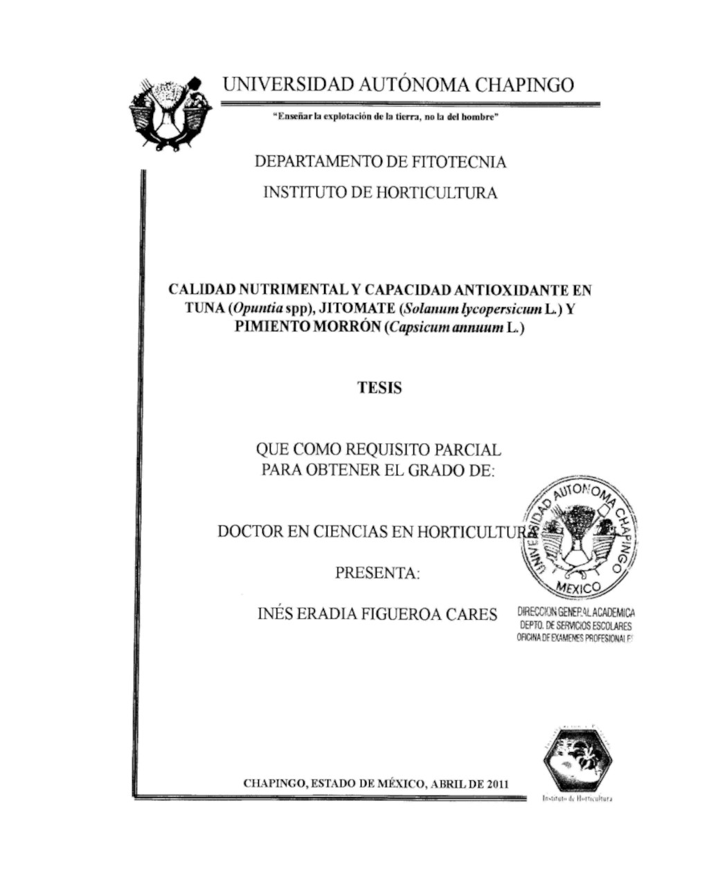 Calidad nutrimental y capacidad antioxidante en tuna (Opuntia spp), jitomate (Solanum lycopersicum L.) y pimiento morrón (Capsicum annuum L.)