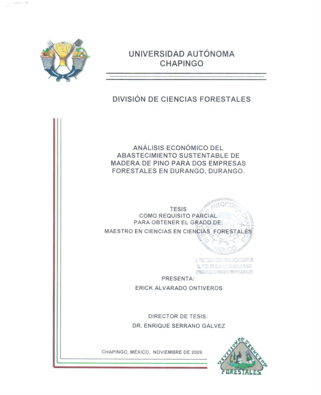 Análisis económico del abastecimiento sustentable de madera de pino para dos empresas forestales en Durango, Durango