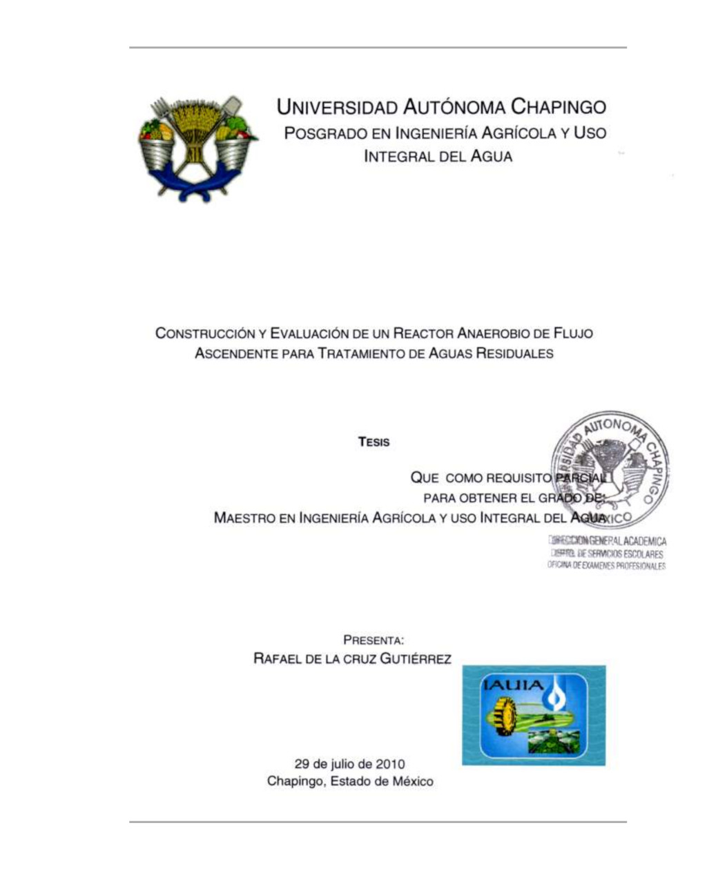 Construcción y evaluación de un reactor anaerobio de flujo ascendentes para tratamiento de aguas residuales