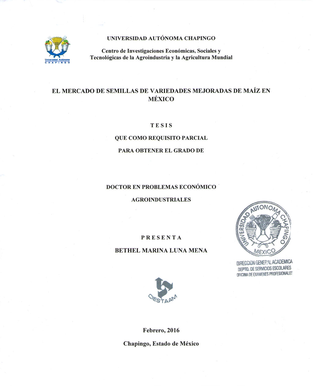 Tesis (Doctorado en Problemas Económico Agroindustriales)