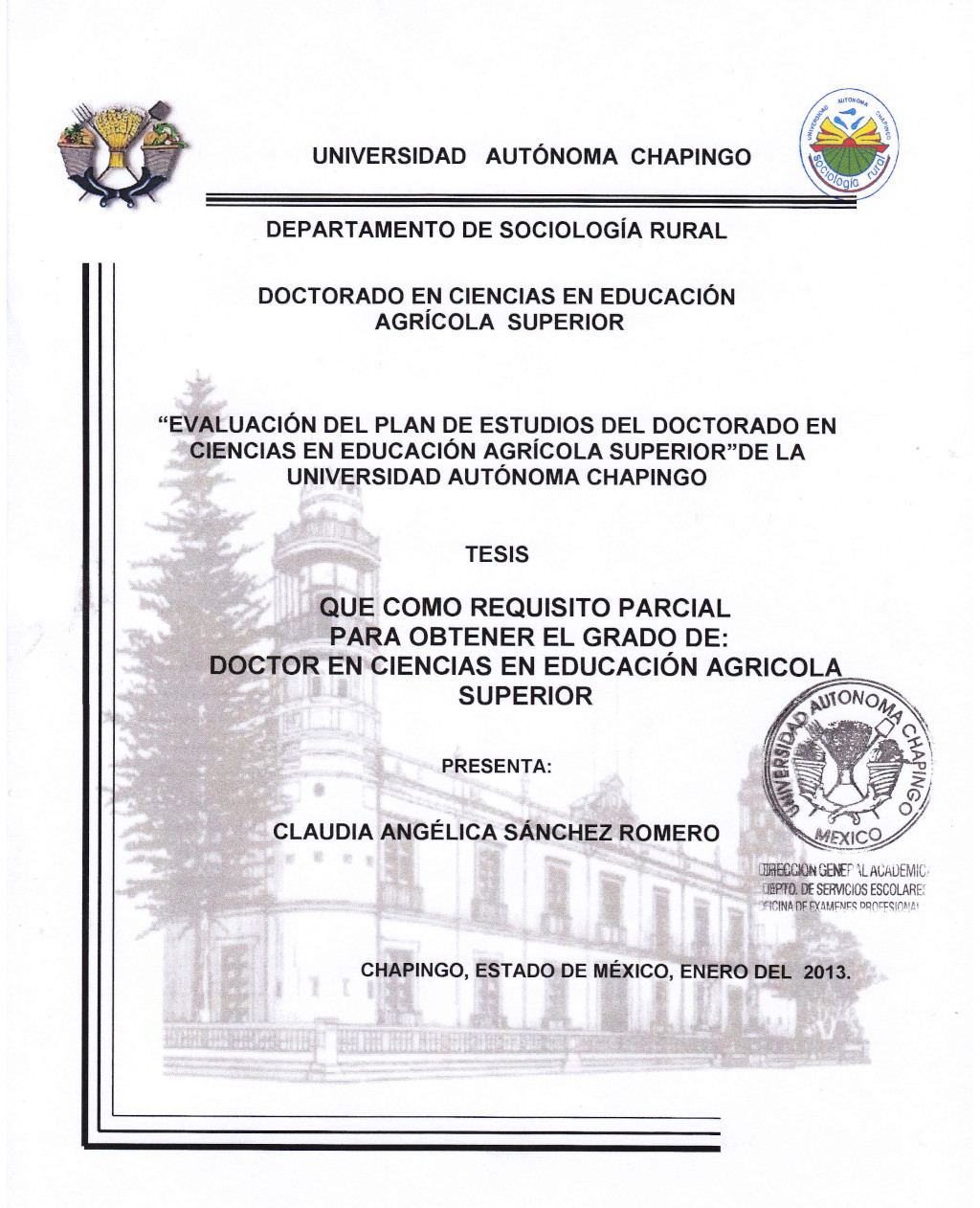 Evaluación del Plan De Estudios del Doctorado en Ciencias en Educación Agrícola Superior” de la Universidad Autónoma Chapingo