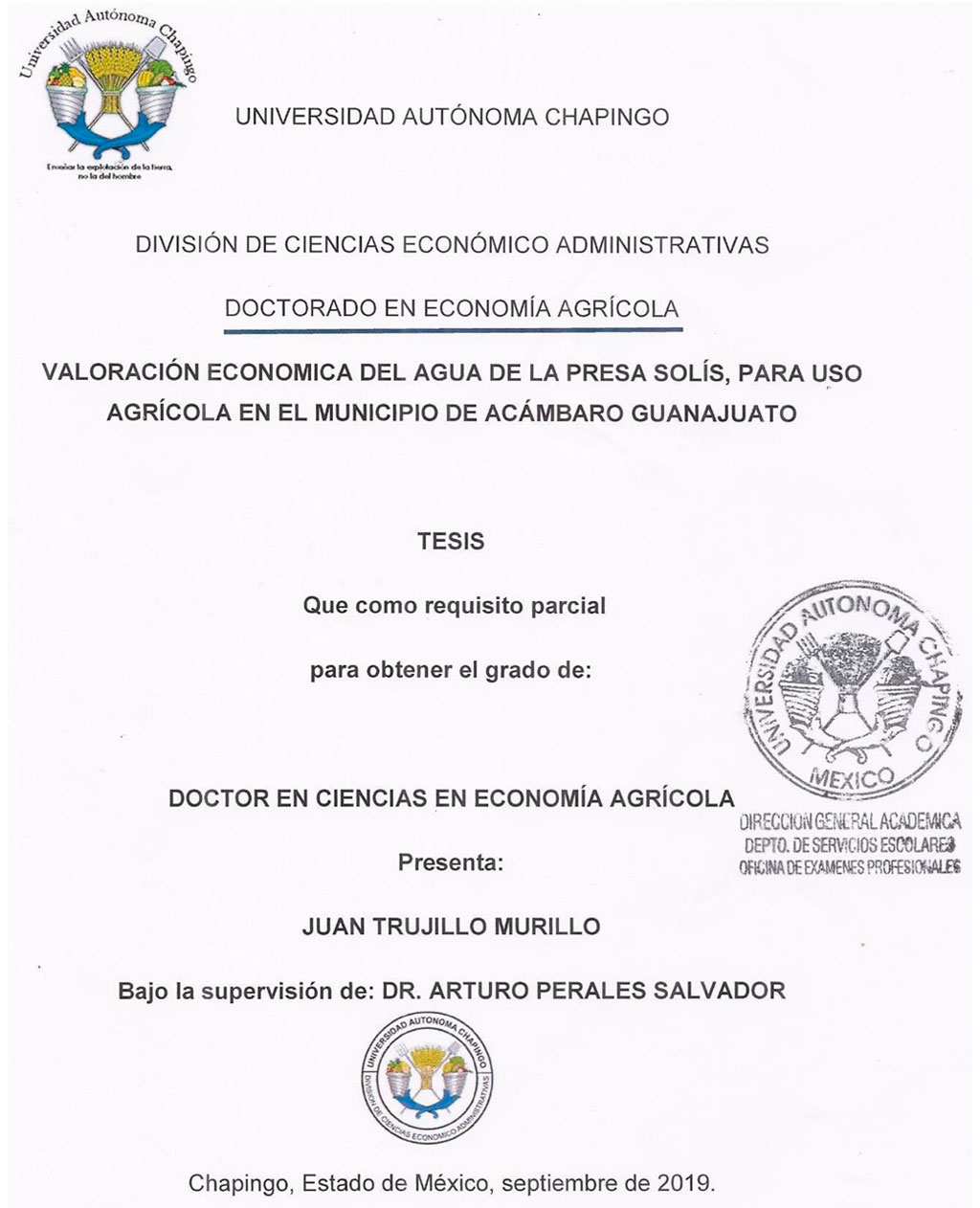 "Valoración Económica del Agua de la Presa Solís, para uso Agrícola en el Municipio de Acámbaro Guanajuato"