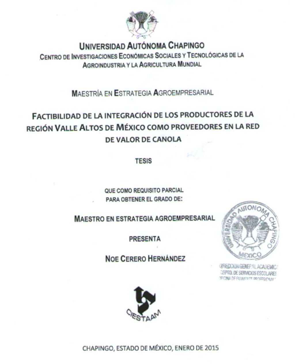 Factibilidad de la integración de los productores de la Región Valles Altos de México como proveedores en la Red de Valor de canola