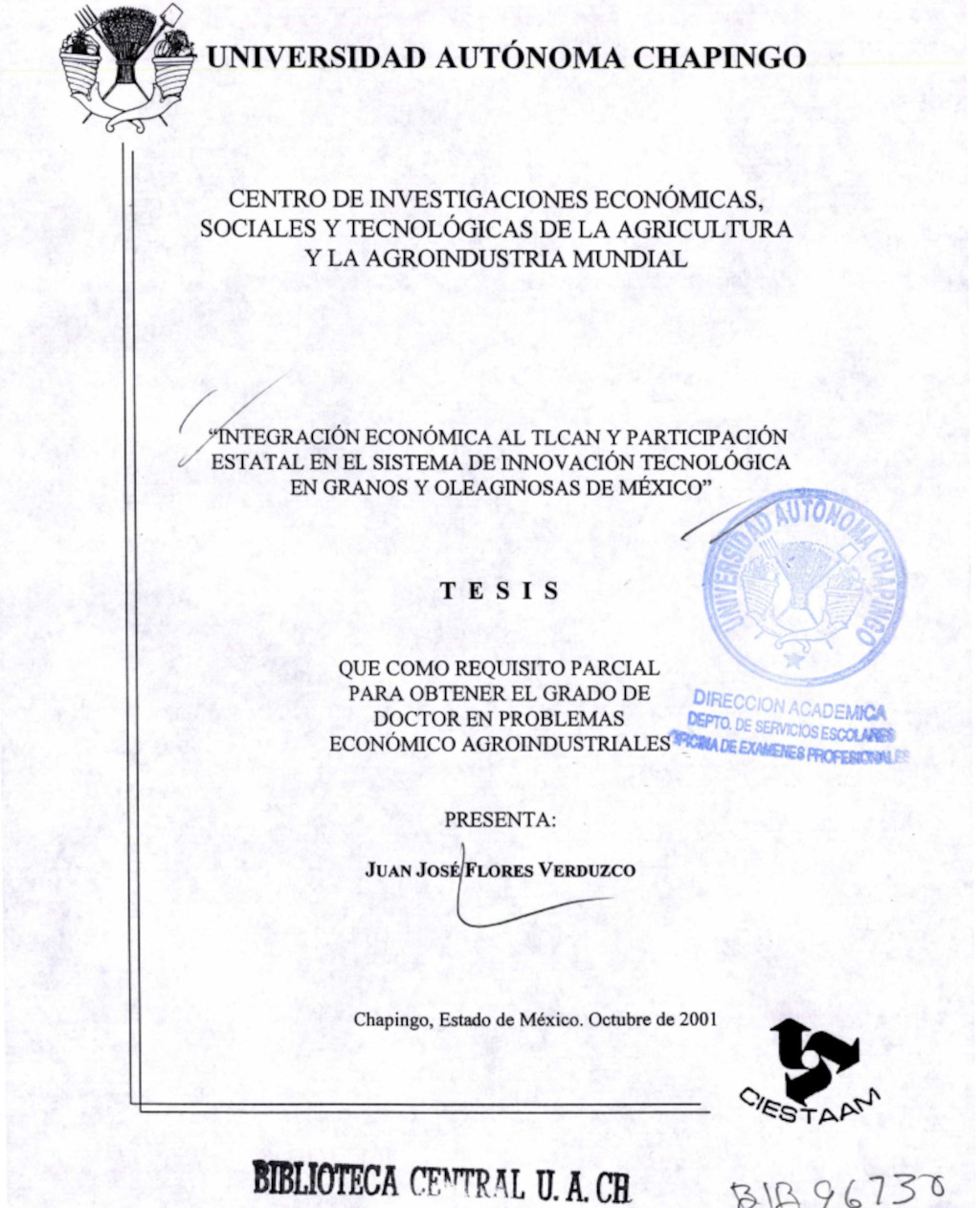 Tesis (Doctorado en Problemas Económico Agroindustriales)